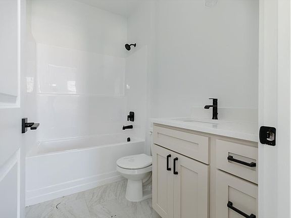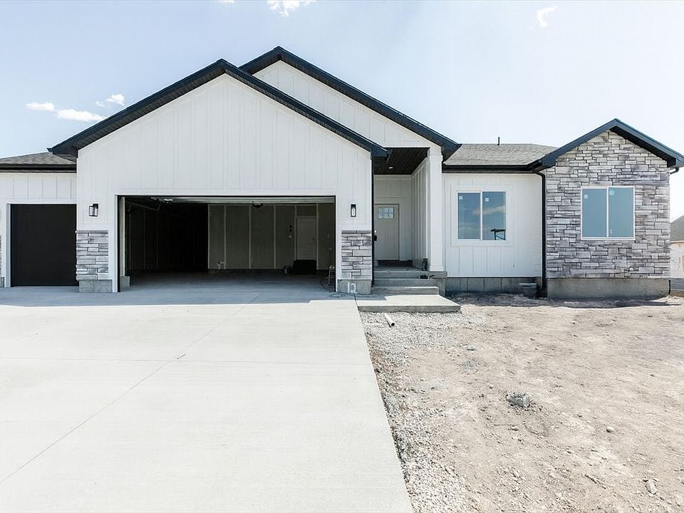 New custom home with great upgrades: paint-grade cabinets, quartz countertops, double ovens, included fridge, tiled bathrooms, fireplace, amazing pantry, and a primary bath with a separate tub and shower. Features 9' ceilings, a large 0.28-acre lot, and an extra-deep oversized garage. Home is scheduled to be finished by the end of January. Photos show an almost completed home with the same plan and finishes, just mirrored.