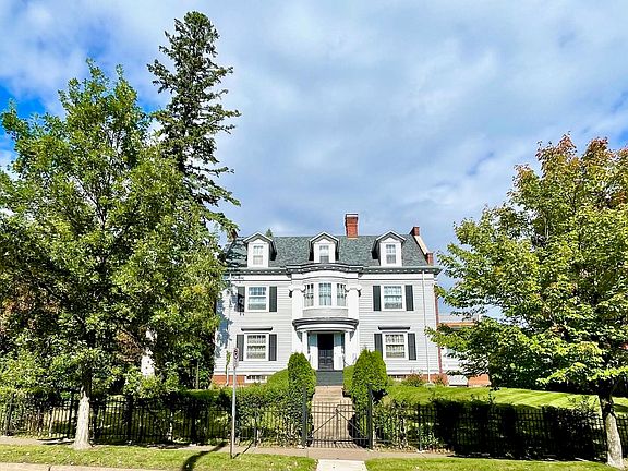 WELCOME to 124 N 24th Avenue East. This stately & spacious 3 story home showcases Classic Colonial Revival design. Wonderful symmetry & architectural details. This 5 bedroom 4 bath home carries the symmetrical architecture throughout all 3 stories with the captivating main floor foyer & 2nd & 3rd floor sitting rooms. The ornate dentils detail is carried from the exterior throughout the interior. Main floor features oak hardwood flooring, 9' ceilings, formal dining & fireplaced living room, along w/ a sunroom. Updated spacious functional kitchen w/ convenient 2nd entrance, 1/2 bath, access to butler staircase & finished lower. 2nd floor has maple hardwood flooring throughout. Primary bedroom w/ private bath & 2nd story deck w/ Lake Superior view. 2 more bedrooms & bathrooms. Woodburning fireplace in sitting room. 3rd story w/ maple hardwood flooring throughout & 2 additional bedrooms plus sitting room. Lower level features a large rec room w/ wet bar, tons of custom built-ins, workshop, laundry & storage rooms. Wonderfully landscaped spacious & fenced yard. Matching 2 car garage. I am told the original owner, a prominent insurance industry individual, built the home in 1910 as an exact replica of an east coast home. Broker/agent related to seller.