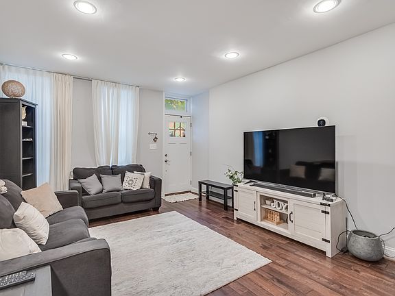 Brick-front exteriorEnclosed backyardModern sofaPrivate ensuite bathStylish rustic dining setNewer appliancesUpdated kitchen