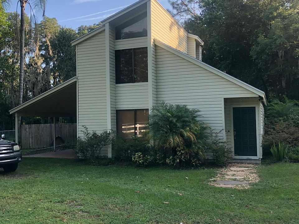 2 Story - 2br, 2b, house with loft. Master on 1st floor. Tile in kitchen, living & dining area, wood in master and carpet in 2nd br & loft. Walk-in closest in both bedrooms. Small screened in porch. carport, Located on dirt road. - 1 plus acre lot - Lawn maintenance included in rent. House is on well and septic. House is not available for showing until the end of the month. $300 non-refundable pet deposit if you have animals