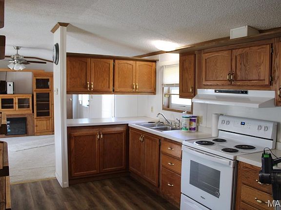 This three-bedroom, two-bathroom singlewide mobile home spans 1,216 sq ft and is situated on 1.545 acres. It features a spacious living room with a corner fireplace, a master bedroom suite complete with a large tub and separate shower, and a laundry room conveniently located just off the kitchen. The layout showcases a split bedroom floor plan for added privacy.