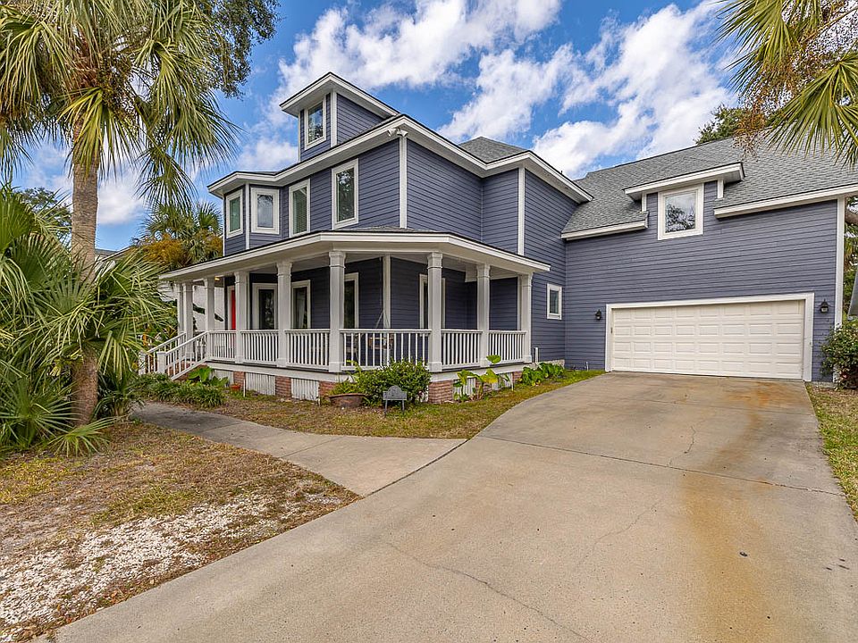 Fall in love with this spacious three-story home in the highly sought-after Harrison Pointe neighborhood of St. Simons Island. Built in 1997, the home features an open and inviting main living area, a gourmet kitchen with granite countertops, stainless steel appliances, and a gas cooktop. Wood floors run throughout much of the first level, and a screened porch overlooks the fenced backyard, ideal for relaxing or entertaining.