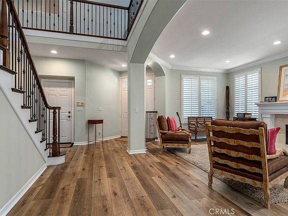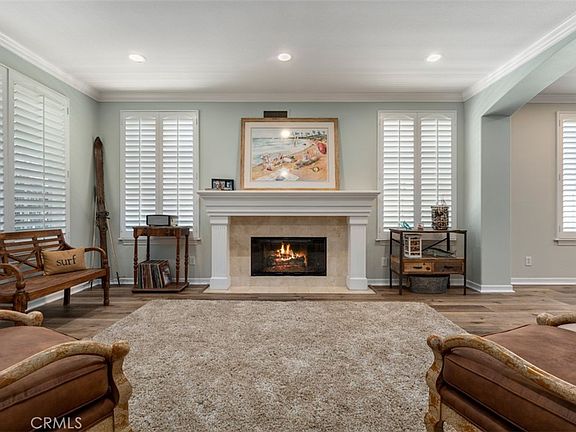 Welcome to your dream home nestled in the heart of the highly sought-after Woodbridge Reserve community. Built in 2000 & first time on market, this exceptional home sits on a tranquil cul-de-sac with no rear neighbors, offering unparalleled privacy & serenity. Step inside & be greeted by luxury wood vinyl flooring that elegantly flows throughout the home, adding a touch of sophistication. The gourmet kitchen is a perfect blend of style & functionality, featuring leather honed granite counters & pristine white wood cabinetry. Enjoy cozy evenings by one of four fireplaces, found in the living room, family room, expanded bonus room, & primary suite. The remodeled primary suite serves as a luxurious retreat, complete with a soaking tub, separate oversized shower, dual vanities, & walk-in closets with custom organizers. The expanded bonus room includes a grand fireplace, ideal for a media room or play area, while the study or office area offers two workspaces perfect for remote work or study. Custom lighting & designer carpet enhance the aesthetic appeal, complemented by tasteful interior & exterior paint. The open & bright floorplan is welcoming & spacious, filled with abundant natural light. A main floor bedroom & bath offer convenience for guests or multi-generational living, while the large downstairs laundry room provides ample space for your laundry needs. The formal wood staircase adds a touch of classic charm, enhancing the entry of this grand residence. Modern amenities abound, including a built-in refrigerator, wine refrigerator, 8-burner Viking stove, oven & warming drawer, making this home a culinary enthusiast's dream. Step outside to the covered outdoor living space, perfect for entertaining or relaxing, surrounded by mature fruit trees offering fresh fruit from your own backyard. The 3-car garage, complete with extra storage & garage floor coating, ensures your space is organized & functional. This home is also energy efficient, featuring solar panels & dual-paned windows to reduce utility costs. Located in a community with outstanding amenities, enjoy access to 24 pools, tot lots, sports courts, pickle ball courts, a serene lake for fishing, & parks with tree-lined shady streets. With close proximity to freeways, commuting is a breeze. This 5 bedroom home exemplifies pride of ownership, with every detail thoughtfully considered. Don’t miss the opportunity to own this exquisite expanded residence in one of Irvine’s most desirable neighborhoods.