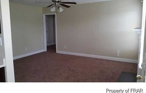 -Well maintained home. Fourth Bedroom is bonus room. New carpet throughout. Fresh paint. New appliances. New decking boards. Large open fenced yard. All vinyl exterior, low maintenance. Covered front porch. Located in a rural setting at end of cul-de-sac. Easy to show. Minutes from Ft. Bragg.