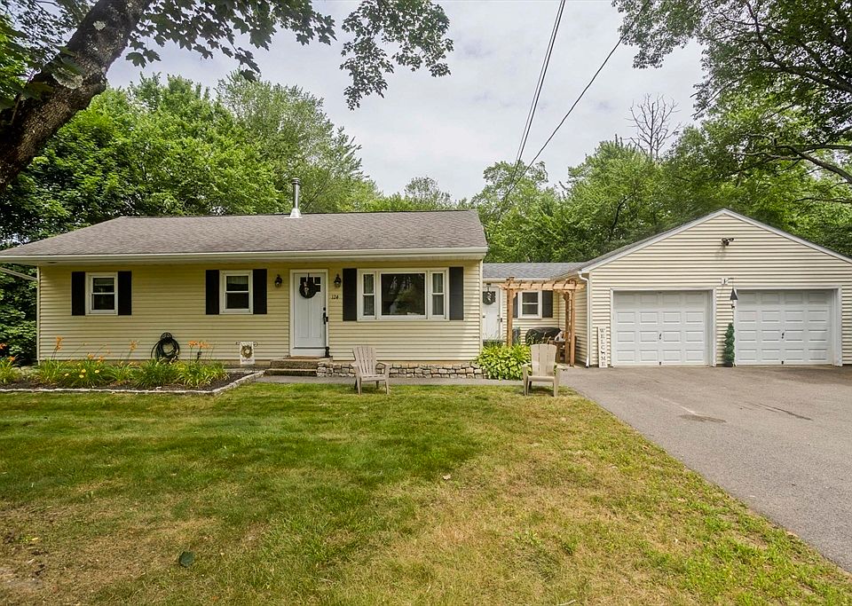 Welcome to this beautifully updated ranch-style home, offering comfort, style, and space. This 2-bedroom, 1-bath residence features a recently renovated eat in kitchen with sleek granite countertops, stainless steel appliances, and recessed lighting—perfect for home chefs and entertainers alike. The inviting living room includes a cozy wood-burning stove, ideal for chilly evenings, while the breezeway provides a flexible space that connects the main house to the spacious 2-car garage. Original hardwood floors in the bedrooms add warmth and character. Set on a large lot with an expansive backyard, this home offers plenty of room for outdoor living. Whether you're starting out or downsizing this home offers many appealing features with a convenient location. Walk or take a short drive to nearby playgrounds, restaurants and local shopping at the town common. Showings begin immediately! Open house scheduled for 7/1/25 from 5-7pm.