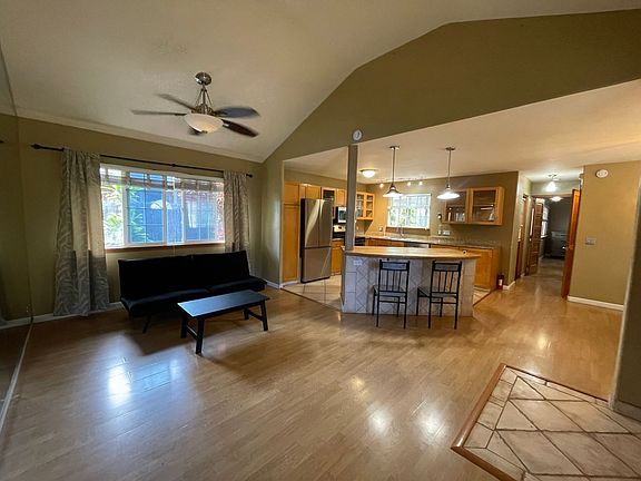 Two-story home for rent in a great neighborhood! 3 bedrooms and 2 full bathrooms. Open concept kitchen and living room with AC. One car garage and driveway space for 2 vehicles. Large, covered lanai area with mature landscaping around the house. Washer and dryer included. Nice location between Kahana and Napili, close to shopping, grocery, and restaurants. Walking distance to beach access!