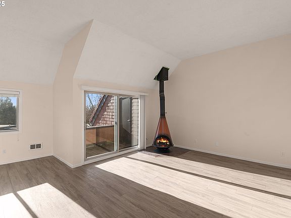 Light-filled upper unit with soaring vaulted ceilings, retro touches, and UPDATES throughout! New interior paint, new flooring upstairs, remodeled primary bathroom, new water heater, and more! 2 bedrooms and 2 bathrooms, spacious kitchen, attached garage, and scenic balcony with storage room. Enjoy community amenities such as pool, Clubhouse, rec center / gym, tennis courts, and more. Enjoy a beautiful setting with manicured landscaping, lovely views, walking trails, and nearby Restaurants & Shopping in Lake Oswego. NOTE on the HOA: $572/month and additional approx $300 semi-annually. This property has 2 HOAs: Mountain Park HOA & Oswego Summit Condos. Each HOA bills and operates separately. Come see this delightful Mountain Park condo today!