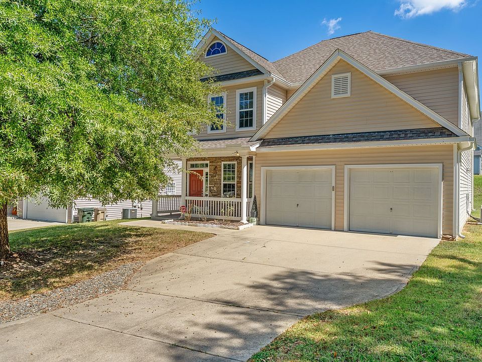 Outside, the home features a 2-car garage plus extra parking, a covered porch and patio for outdoor enjoyment, and a charming exterior with stone and vinyl finishes. Located moments from I-40 and Hwy 70, this home puts you close to everything the Triangle has to offer.