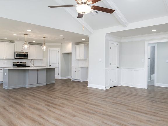 Constant appeal and elegant definitions are found in the "Kinkade" plan for those calling for luxury and comfort. A vaulted beamed ceiling in the huge great room accentuates the space along with excellent finishes. The custom fireplace allows an even greater level of amenities while offering sheer enjoyment of an evening fire on those cooler nights. The huge kitchen's attention to custom cabinetry, upgraded stainless steel appliances, and granite counter tops, are sure to enhance cooking and eating experiences. Retire to the primary suite that exudes privacy and use of space and take advantage of the well thought out primary bath with every amenity for speedy starts for the day. From something as simple as a laundry room that does not abut any bedroom or the bonus room located upstairs along with a half bath that can be used as an office space, entertainment room, or even another bedroom; this plan provides plenty of comfort.