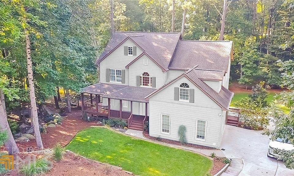 Bring your paddle board, canoe and desire for privacy. This beautiful home is nestled on almost an acre with lakefront access. In this gorgeous, natural setting, you will have it all - the woods, water and the convenience of being just minutes away from highways, shopping and great north Paulding schools! Special features include crown molding, hardwood floors on the main level, fresh paint throughout, two laundry rooms, plus an expansive driveway with a paved turnaround and extra parking. You will enjoy cooking in the fully-equipped chef's kitchen with five burner gas cooktop, hide-away vent hood, microwave, convection oven, island, large pantry, black stainless steel appliances and granite countertops. Just off the kitchen is a sunroom which overlooks the backyard and opens to a deck for outdoor entertaining. The soaring ceiling in the large family room emphasizes spaciousness. The fireplace with gas logs is flanked by oversized windows that provide a picturesque view of the grassy meadow, woods and firepit. Also on the main level is a separate dining room for more formal gatherings, a laundry room and a half bath. Upstairs, the primary bedroom has a tray ceiling and a separate sitting room that could be an office, nursery or dream closet! The en suite bath with a double vanity has a walk-in closet with a second laundry. Three additional bedrooms and full bath complete the upstairs. The partially finished basement with its bar and pool table is perfect for hobbies, parties or a Cman cave.C There is plenty of extra storage space for your lake toys plus an exterior entrance. If you are looking for a place where you can get away without going away, this house is a must see! *WHITE FRONT IMAGE OF HOME HAS BEEN VIRTUALLY ENHANCED TO ILLUSTRATE POTENTIAL**