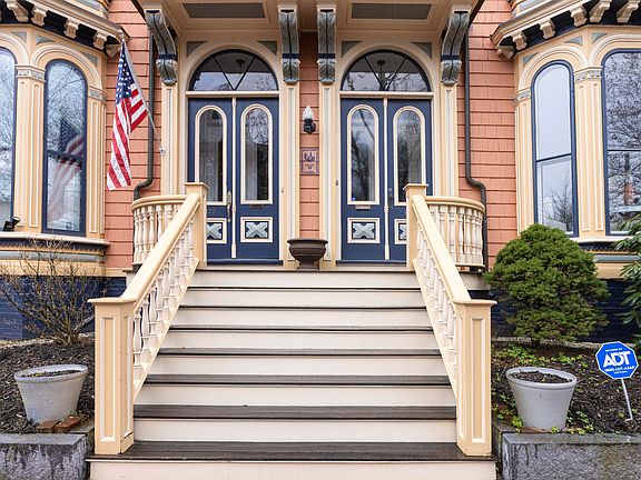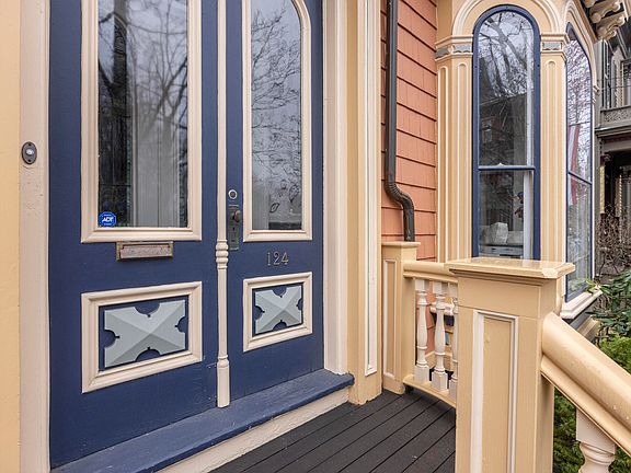 This stunning spacious West End townhome has been meticulously restored and maintained and offers period charm and details including hardwood floors throughout. Lots of flex space for living. Gorgeous entry with stained glass and impressive staircase, living room with bay window and gas fireplace, gracious dining room with wood fireplace & built-ins. Custom kitchen that opens to a covered porch and has exposed brick, bay windows and gas fireplace, a generous island w/storage & breakfast bar. On the 2nd floor you will find the primary suite with bay window and bath w/glass-tiled steam shower & radiant mirrors to deter fog. On the 3rd floor you will find 3 additional bedroom and access to the fabulous roof-top deck. Laundry on 2nd floor & basement. Updated state of the art gas heating - radiant on the 1st & 2nd floors.