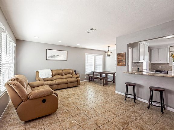 Welcome to easy island living in Fish Village/Lindale Park-just minutes from UTMB, Lindale Park, the beach and the Strand. This one story home combines comfort with convenience with updated windows (2019), newer roof (2013), and a fully fenced backyard -great for kids, pets and gardening. Jungle gym and patio included. Inside, the living/dining/kitchen areas are open and the spacious primary suite offers 2 walk-in closets and a private bath and a bright home office that opens to the backyard through sliding door. 2 additional bedrooms share a hall bath. Additional highlights include the tankless water heater and one car garage. Easy to show. Room dimensions and taxes are approximate. Buyer/agent to verify.