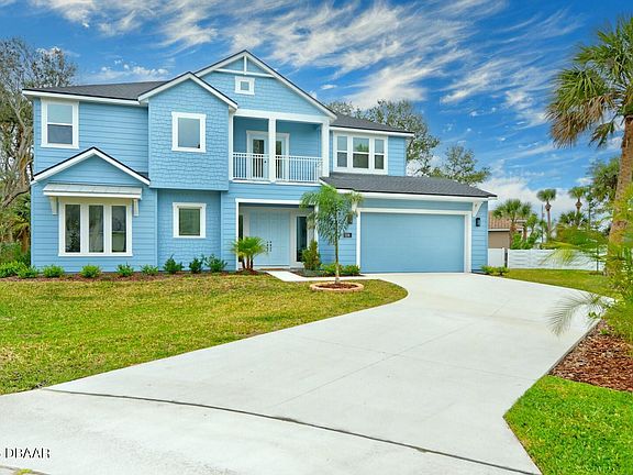 New Construction Coastal Estate in Ponce Inlet with 3,697 SF under roof. Experience unparalleled luxury & tranquility in this custom-designed 4 Bedroom +Office energy-efficient smart home from award-winning builder ICI Homes, perfectly situated on nearly half an acre of backing up to water. Nestled on a serene cul-de-sac in the heart of island life, this staged masterpiece offers the ultimate blend of modern elegance & natural beauty. Start your mornings with the soothing sound of ocean waves from your private balcony or unwind poolside, surrounded by lush landscaping in this idyllic island setting. Step through the grand double doors & prepare to be captivated by soaring 20-foot ceilings & wall of glass that seamlessly merges indoor & outdoor living, showcasing breathtaking views of the pool deck. The centerpiece of the home is a 5 x 7 island overlooking the dramatic 20-foot feature wall with 80-inch fireplace & TV, perfect for entertaining. Fishing & Kayak launch 1 street over! No HOA & low homeowner's insurance. Kayak launch into the Halifax River/Intracoastal. The gourmet kitchen is a chef's dream, featuring stunning quartz countertops with striking blue veining, a sleek 36-inch cooktop with a range hood, an in-wall Wi-Fi-enabled oven/microwave combo, and custom white soft-close shaker cabinets. Elegant glass pendant lighting highlights the expansive 7-foot island, the heart of this home and a favorite gathering spot for family and friends. Spanning 3,697 square feet under roof, this exceptional property includes a flexible office space that can easily serve as a fifth bedroom, offering the versatility to suit your lifestyle. This estate provides unmatched value in the sought-after Ponce Inlet community.Don't miss the chance to live in this island sanctuary where elegance meets coastal charm. Schedule your private showing today and discover the lifestyle you've been dreaming of.