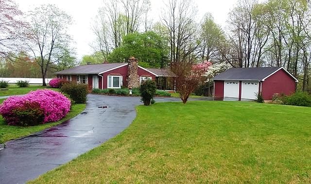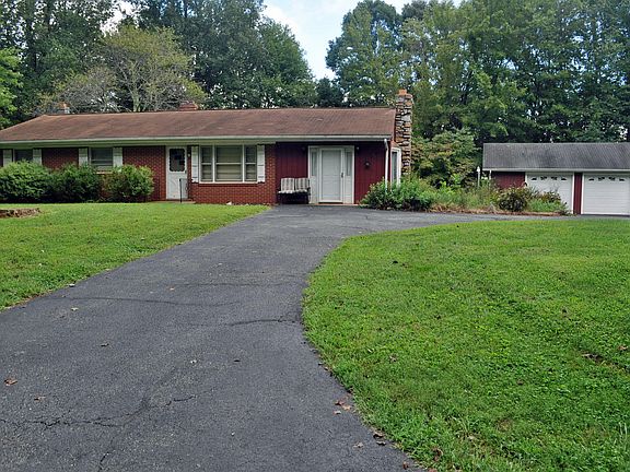 Spacious brick ranch ( wood siding family room) Family room with fireplace /gas logs new carpet. Eat in Kitchen with new vinyl flooring . Hardwood flooring throughout main except for kitchen/bath and family room. Large covered back porch. Full unfinished basement ( has shower and utility sink and sump pump ) Detached oversized garage with electricity /floor drain / 2 work benches and garage doors approx 2 years old . Also additional outbuilding with electricity Less than 10 min to Philpott Lake Home to be sold as is .Sq. ft. lot size est. Information from tax assessment and/or seller. New roof 2019