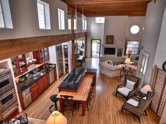 Smashing, Fred Fisher, modern architectural beach home on the exclusive Silver Strand! 3 spacious bedrooms & 4 bathrooms in this upgraded and remodeled former celebrity home. Thoughtful details throughout. Huge open space living, dining, and kitchen with Oak floors, soaring open-beamed ceiling and 2 fireplaces. The gourmet kitchen with center island compliments this large open space area. The spacious family room loft area overlooks the first floor. The second floor has 2 bedrooms. The master bedroom has a fireplace and great bathroom ensuite with steam shower and spa tub with Ann Sachs tile. The office could be a 4th bedroom. Gym for fitness. Minutes to enjoy the beach or boats at the Marina Jetty. Former celebrity home terrific for entertaining!
