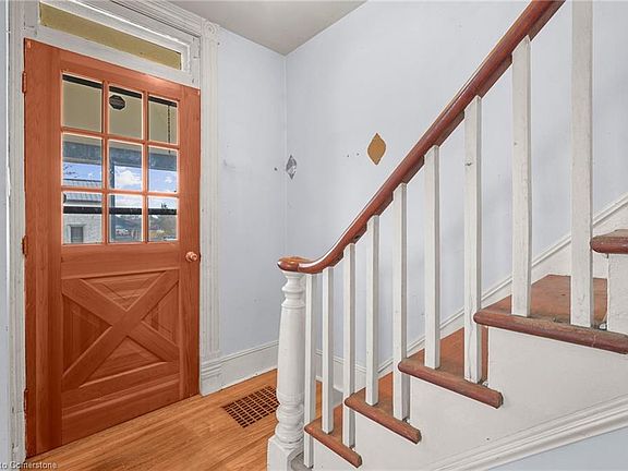 SMALL TOWN CHARM!! Thoughtfully designed traditional 2-storey detached w/ detached garage/workshop featuring 4 beds, 2 bath approx 1600sqft AG situated on a generous 45X125ft right across from TRENT River! Long driveway provides ample parking. East facing Screened covered porch perfect for morning coffee while watching the sunrise & water view or for plant lovers!! Foyer presents bright open-concept living room O/L the front yard. Full updated modern eat-in kitchen w/ newer style cabinets, newer SS appliances, & breakfast bar. Formal dining room adjacent to the kitchen can be used as a family room. Main-floor laundry & 2-pc powder room. 2nd lvl presents 4-spacious bedrooms & 1-4pc bath perfect for growing families. Deep fenced backyard perfect for entertainers, large families or pet lovers! Do not miss the chance to purchase a charming 2-storey detached on a budget! Earn sweat equity w/ light TLC to transform this into your dream home. Potential to convert property into duplex. Steps to top rated schools, parks, Trent River, Shopping, & much more!!