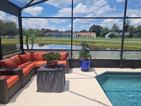 Sanford Sanctuary with Pool & Pond Views - Move-In Ready. Discover peaceful cul-de-sac living with quick access to 417 and I-4 for easy commutes to downtown, airports, and beaches. This well-maintained home offers the perfect blend of comfort and convenience in a quiet neighborhood that reduces through-traffic while keeping you connected to everything Sanford offers. Step onto the welcoming front porch, perfect for morning coffee or evening relaxation, then enter the open-concept living space featuring vaulted ceilings and laminate flooring. The renovated kitchen showcases granite counters, stainless steel appliances, and a large island that flows seamlessly out to the lanai or into the family room, creating an ideal space for daily living and entertaining. Three comfortable bedrooms feature vaulted ceilings, ceiling fans, and marble bathroom counters, while the primary suite includes a spacious walk-in closet and sliding doors leading to the lanai. The true gem is the backyard oasis with a salt water pool overlooking a tranquil pond, complemented by multiple outdoor seating areas perfect for year-round Florida living and family gatherings. Practical features include ample storage in both the garage and attic with reinforced flooring. Recent updates ensure peace of mind with a pool resurfaced in 2023, new roof in 2021, new pool motor, A/C from 2007, and water heater from 2018. This home is ready for immediate occupancy and waiting for your family to make new memories.