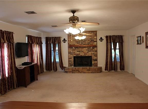 Charming solid brick rancher nestled under the oaks on 1.47 peaceful acres! Situated on a corner lot w/front & side access easily accommodates RV/Boats! Inviting den has a fireplace & offers lots of natural light with its many windows. Separate living rm has a front yd view/Breakfast rm opens to the kit. Kitchen offers oak cabinetry, multiple counter seating & all appls. Master bdrm has its own private bath w/walk-in shower. Waste Water Treatment System 1.5 yrs new! Flood $425. Make this lovely hm your own!