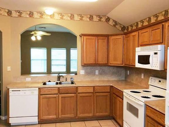 Open concept 3/2/2, 1,600 sf. All appliances, new carpet in bedrooms, paint, AC, roof. Master walk in closet, double electric garage door openers. Large back yard with covered patio and private fence. Sprinkler system. Cathedral ceiling in living room. Large living room with bar separating kitchen. Living room has wood flooring. All electric with gas heating and water heater. inside laundry room. Ceiling fans in all rooms. Near East High School and public walking trail. Great neighborhood. No smokers. All kitchen appliances stay. Dogs allowed- must be 2 yrs old & under 20 lbs. Tenant responsible for yard