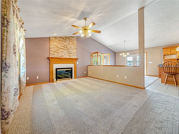 This home offers ranch style living on a beautiful lot! Walk in to a beautifully done living room that has vaulted ceilings, great natural light, and a wood burning fireplace! From the living room you can walk into the dining room that sits between the awesome sun room and and open concept kitchen which boasts a large pantry, tons of cabinetry, and a breakfast bar! Down the hall you will find the guest full bath, the first bedroom with closet space, and then the oversized master suite with a walk in closet, an en suite full bath and a spa tub! The lower level also offers another full bath, a kitchenette, a living room, and an additional bedroom! The partially wrap around deck can be accessed via the master suite, the dining room, or the gorgeous sun room and offers a wonderful view. You will feel at peace in this home and out as you walk around or overlook the immaculately maintained landscaping. The garage is a large 2 car garage with an additional storage room and built in shelving.