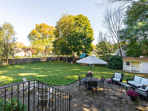 It's the ONE you've often admired! The ONE with extraordinary curb appeal, quintessential Glastonbury charm, so many upgrades, and a magnificent fenced-in, level yard. All of this in a neighborhood that couldn't be cuter and a location central to EVERYTHING. Inside is a dream: 8 rooms, including a remodeled eat-in kitchen, white and bright with built-in banquette, breakfast bar and lovely cabinets refaced in 2024; a living room that flows right into the dining room to create a multi-faceted space for family gatherings and entertaining ; and a family room- or, if you prefer, a home office- with sliders overlooking patio and PASTORAL, private backyard. There is also a fabulous MUDROOM for ease of storage, and a full bath. Upstairs are three spacious bedrooms, and a second full bath. And to top it off, the finished lower level, with its 500 feet of additional living space, is ideal for exercise, media or playroom. Outside is a paver patio installed in 2016, a bluestone front walkway, an expansive backyard oasis, fenced- in for privacy and kid's play, and a shed/ playhouse. The house is vinyl sided, has Harvey windows, and a 40-year roof, all installed in 2007. Other amenities include a one-bay attached garage, hardwood flooring on the entire first floor and second floor hallway, fireplace, furnace replaced 2014, oil tank replaced 2005. Public water!