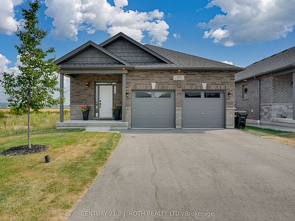 Welcome to 124 Ritchie Crescent, where refined design meets peaceful country charm. This beautifully crafted bungalow by Still Homes backs onto endless acres of farmland, offering privacy and breathtaking views. With over 2,300 sq. ft. of thoughtfully finished living space, this home blends luxury, comfort, and style. The main level features two spacious bedrooms, two full bathrooms, and convenient main-floor laundry. The finished lower level adds a third bedroom, a full bath, and a home office that can easily function as a fourth bedroom. With direct access from the garage, the basement is ideal for in-laws or extended family. Upgrades throughout include engineered hardwood floors, smooth 9' ceilings with pot lights and designer fixtures, a fireplace with built-in shelving, and a custom 12' x 8' patio door that frames the open farm views. The foyer, bathrooms, and laundry area feature upgraded ceramic tile, and the trim and window casings have all been upgraded. The kitchen is a showpiece with quartz counters, white shaker cabinetry, a farmhouse sink, tiled backsplash, under-cabinet lighting, a gas range, chimney hood fan, stainless steel Maytag appliances, and a water line to the fridge. Downstairs, you'll find luxury vinyl floors, smooth ceilings, cinema pot lights, and a spa-like bathroom with heated tile and a glass shower. If you're looking for a move-in-ready home with top-tier finishes and peaceful surroundings, this one is a must-see.