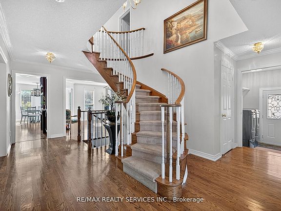 Welcome to Valleywood, one of Caledon's most sought-after communities, ideally located just off Highway 410 and minutes from shopping, parks, and top-rated schools including the coveted Mayfield Secondary School. This elegant family home delivers more than 3,300 sq. ft. plus a beautifully finished basement - perfect for growing or multi-generational families. Step through the grand double-door entry into a bright and inviting main floor designed for both comfort and connection. The combined living and dining rooms offer a seamless space for entertaining, while the updated kitchen boasts a large centre island, custom cabinetry, stainless steel appliances, and JennAir induction cooktop, perfect for family gatherings and everyday meals. The spacious family room with its cozy gas fireplace provides the ideal setting for relaxing evenings together. A main-floor den adds valuable versatility and can be used as a home office, study, or even a guest bedroom. Upstairs, you'll find four generous bedrooms and three fully-renovated bathrooms; each bedroom with direct access to a bathroom. Two bedrooms feature their own private ensuites. Solid oak hardwood flooring runs throughout the main and upper levels, adding warmth and timeless elegance. The finished basement expands the living space even further, with a newer full kitchen, large recreation and living areas, a bedroom, and a three-piece bathroom. It offers endless possibilities for an in-law suite, nanny quarters, or potentially legalizing it for rental opportunities with its existing separate entrance via the laundry room. Outside, enjoy a quiet, landscaped backyard with inground sprinklers and a large patio perfect for Summer barbecues and family fun. A double car garage and room for three cars in the driveway complete this impressive property.