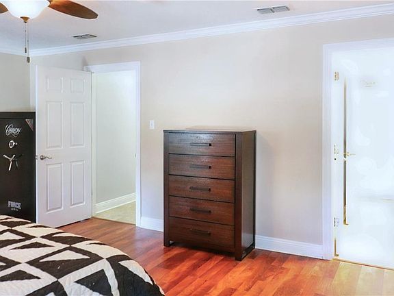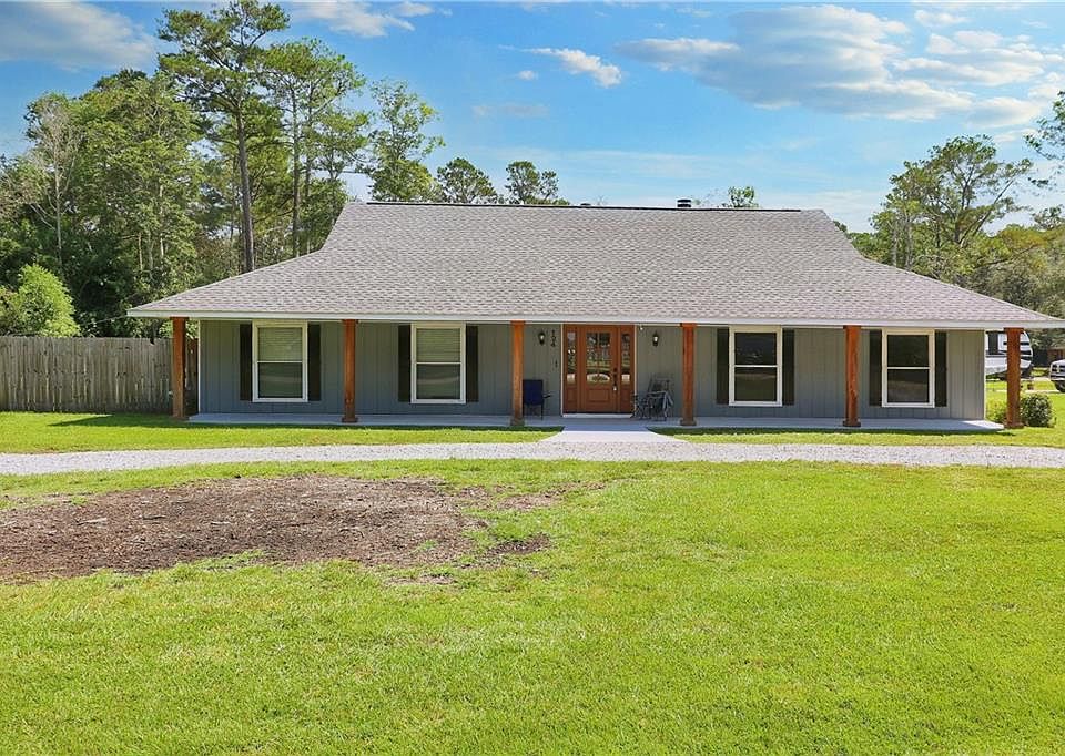 Situated in one of Slidell's most peaceful neighborhoods, this exquisite home graces a corner lot embellished with majestic oak trees. Fully renovated, it showcases stunning laminate wood floors throughout, enhanced by marble tile and elegant crown molding. The expansive and luminous den features soaring ceilings and a warm fireplace, fostering a welcoming ambiance. The remarkable kitchen is outfitted with stylish cabinets and stainless steel appliances, catering to any culinary enthusiast's needs. A wonderful office with a bay window provides a tranquil workspace. The generously sized bedrooms and a master suite with French doors leading to an impressive patio, great for hosting gatherings and barbecues. Furthermore, the property includes a shimmering pool and a spacious backyard, offering plenty of room for relaxation and outdoor enjoyment, making it a home you'll cherish for days on end.