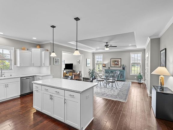 Welcome to 124 Rumsey Circle, Unit A! A stunning single-level condo offering maintenance-free living in the charming community of Versailles. This luxurious home offers a thoughtfully designed floor plan featuring three spacious bedrooms, two full bathrooms, and an oversized garage with an epoxy-coated floor. Throughout the home there are 9-foot ceilings with crown molding and enjoyable living spaces. The kitchen has white cabinets throughout with a large island, stainless steel appliances and abundant storage! Primary suite offers a spacious walk-in tiled shower, upgraded cabinetry with plenty of storage & a large closet. The laundry features ample storage and transitions to the oversized two car garage. Enjoy the additional bonus or office space that overlooks the patio, offering a serene view of the lush green space and perfect for watching the sunset. You can also take advantage of the proximity to Falling Springs walking path and community center. This exceptional condo is move-in ready and waiting for you to call it home. Contact us today to schedule your private showing!