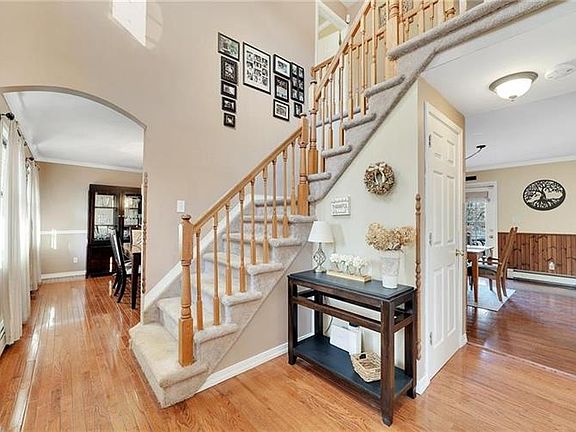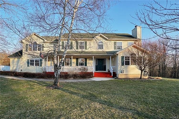 Stunning 4 bedroom 2.5 bath Colonial with 3 lush private acres located in a quiet neighborhood of Wallkill. Large eat-in kitchen with lots of cabinets, custom backsplash and wainscoting. Appliances are included. Spacious family accented with stone-faced fireplace. Bright and open living room also contains a second doorway leading to the expansive deck. Formal dining room equipped with crown molding and hardwood floors. Generous master bedroom offers double closets, with a walk-in and en suite. Remaining three bedrooms are also roomy in size. Additional 488 sq ft bonus room comes off the kitchen and leads to a second family room upstairs. Has vaulted ceilings and plenty of windows. Dry basement makes for a great workshop. Basement has a walkout to the backyard and tall ceilings. Huge double deck is perfect for entertaining. Bottom deck leads to and surrounds the pool. Enjoy the private 3 acres and mountain views. Wallkill schools! Automatic generator included. Nothing to do but move in!