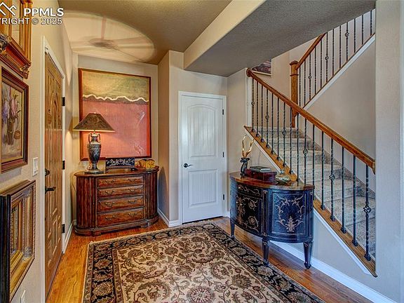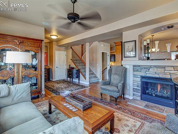 Don't miss this beautiful & pristine 4-bedroom home in the very desirable Gold Hill Mesa neighborhood. Built by Vanguard Homes, this Canton model offers an exterior with HardiePlank siding, natural stone accents, craftsman columns and an inviting front porch. Inside, you'll find beautiful hardwood floors throughout the main level, 9' ceilings and a two-sided fireplace that provides a cozy atmosphere in the living room and the dining room. The upscale kitchen offers updated stainless appliances, a spacious center isle with counter seating, a walk-in pantry and a walkout to the covered deck. The kitchen appliances include a new dishwasher (2024), new microwave (2024), refrigerator (approximately 5 years old) with ice maker and a new (2024) stove with double ovens that provide both convection cooking & air-frying. (Note: there is a gas line for a gas stove if you prefer.) On the upper level, you'll find three of the four bedrooms. The primary bedroom features a ceiling fan & a spacious 5-piece bathroom. This bathroom has a dual vanity with slab granite counters, tiled floors, soaking tub and tiled shower. The basement has 9' ceilings and features a big family room, another bedroom, an upscale bath and a big utility room with ample storage. Additional amenities include a fenced backyard with AstroTurf, ceiling fans and a speaker system. A well-planed community, the neighborhood is connected by green belts & walking paths that lead to the Community Center...a gathering place for concerts, potlucks and other events. Bear Creek Park is less than a mile away with hiking trails, tennis & pickleball courts, sports field, picnic areas and the popular Bear Creek Dog Park.