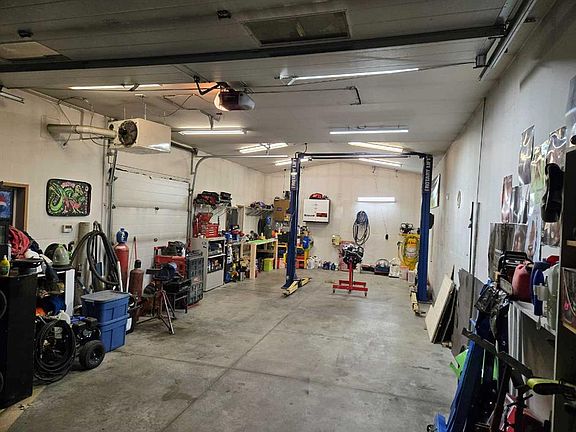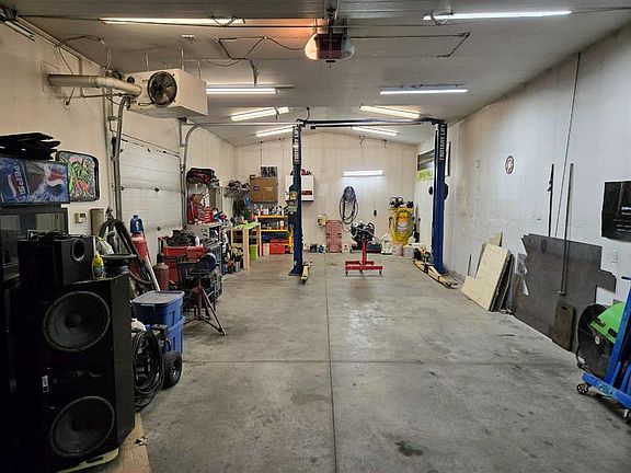 MECHANIC’S DREAM – This garage is incredible! Measuring 43’ x 19’ with 10’ doors, it’s fully heated, insulated, and wired and has a 10,000lb lift! This would cost at least $55K plus to rebuild! . Start a home based business! Room for 4 cars indoor with additional 4 car parking or RV parking outside! The charming home is ready for its next family, featuring new laminate flooring on the main level, two updated bathrooms, fresh paint, and newer upstairs windows—completely move-in ready! You’ll find 2 bedrooms on the main floor and 2 more downstairs, along with a spacious family room. The high-efficiency furnace, shingles, fridge, and stove are only about 7 years old, plus the home comes with central air. RV parking! A must-see property!