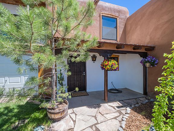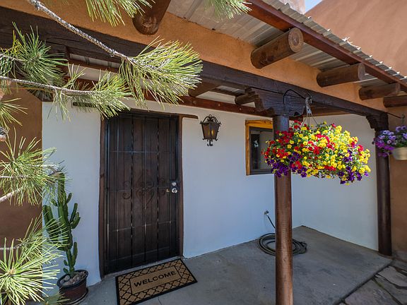 OPEN HOUSE SAT 5/13 - 10am-2pm - See parking info in last photo. Don't miss out on this rare opportunity to own in Corrales at an amazing price! This townhome features classic, original NM charm including wood ceilings, clerestory windows, brick floors, kiva fireplace, master bedroom balcony and incredible Sandia Mountain views. You'll love the mountain views with your morning coffee and watching the sunset on the balcony. Kitchen has been refreshed with refinished hand-made cabinets, new butcher blocks counter tops, farm sink & new pantry shelves. Both bathrooms have been recently updated. All new paint throughout the home. New carpet & ceiling fans upstairs. In last last few years new evap cooler, hot water heater, refrigerator, stove, dishwasher, stucco, windows & sliding door.
