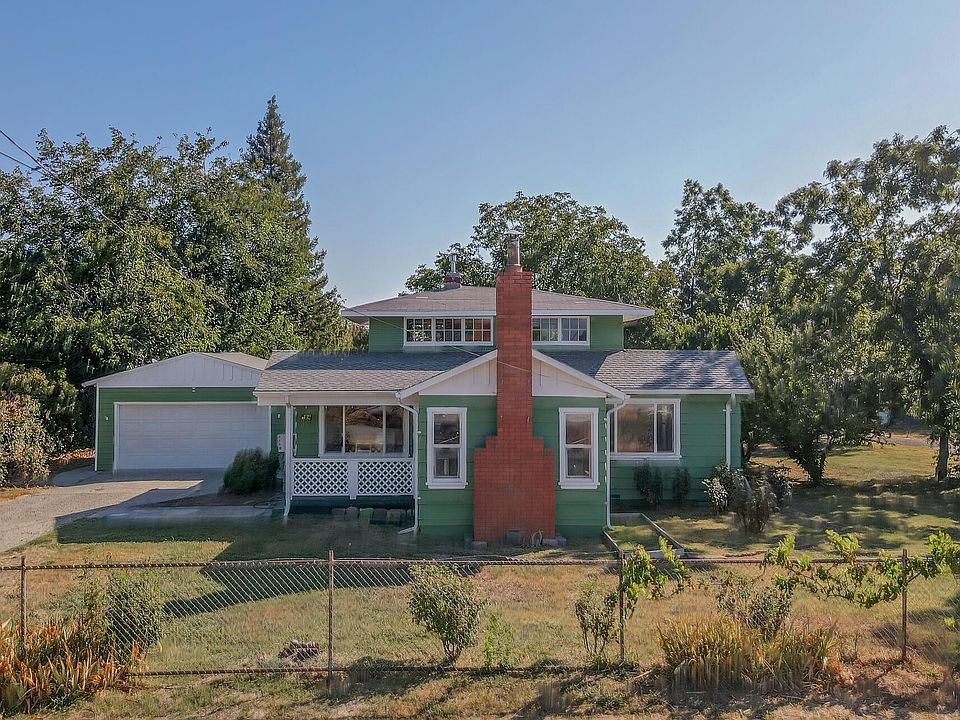 Welcome to Grandma's house in the country! This property consists of 2adjoining parcels totaling approximately 2 acres with large orchard properties on 3 sides.. The 2 story home has had some updating but still has lots of charm. You will feel right at home as you enter the front living area with wood stove ion brick hearth. The kitchen has a tile floor and solid surface counter tops. There are 2 bedrooms and office space in the back and 1 bedroom in front. There is an inside laundry with washer and dryer included and a tankless water heater. The upstairs loft area is spacious and open with lots of light. The two car garage is attached. Outside you will find a large shop with concrete floor and metal exterior. The additional 1/2 acre is located behind the shop. There is a well