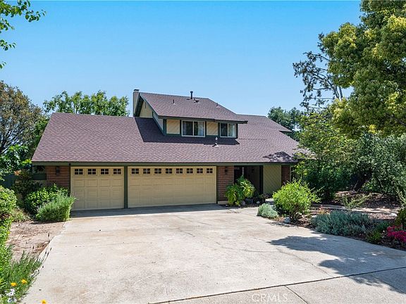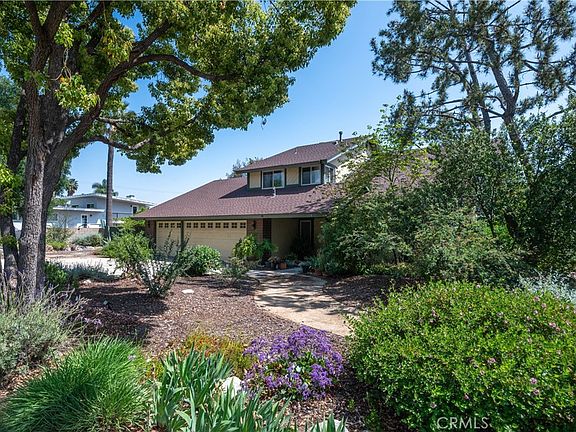 Nestled on a beautiful street, this stunning home is a spacious beauty. The house sits back in a luscious bed of artistically designed landscaping. As you enter, you're greeted by an updated, bright living and dining area filled with natural light. The updated kitchen offers panoramic views of the backyard, perfect for enjoying the scenery while you cook. Downstairs, you'll find an office with built-in cabinets, which can also serve as a bedroom. The family room, complete with a fireplace, is ideal for cozy evenings. Upstairs boasts three spacious bedrooms, including a bright primary room with a large en-suite featuring a soaking tub. One of the bedrooms offers calming views of the mountains. The backyard provides many sitting areas. The pool will be a nice place to relax and enjoy the California sunshine. The updated three-car garage includes plenty of storage and newer epoxy floors. Close to shopping and walking trails.