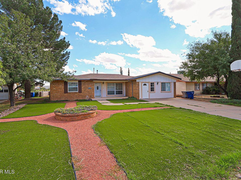 One story brick home located on a 12,064 q ft view lot! This 3 bedroom / 2 bath plus flex room is truly a must see! Features include: refrigerated air, formal living and dining room, Brazilian cherry wood flooring and tile throughout. Large laundry room, lots of cabinetry, brick fireplace highlight this exceptional home. Backyard covered patio, spacious lot, views of the Franklin Mountains, no backyard neighbors, close to schools, restaurants, I-10, and much, much more!! Call to schedule your tour today.