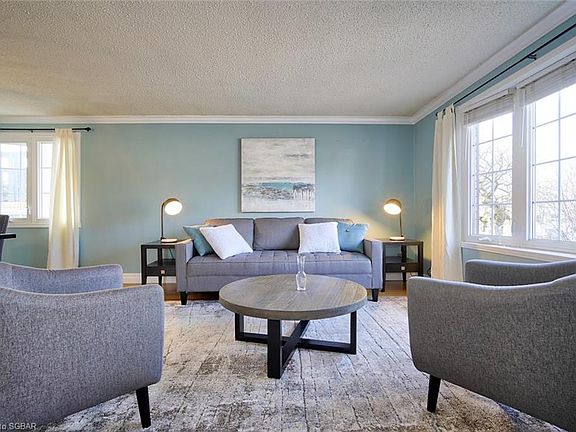 Elegant three bedroom+ 2 bath open concept bungalow located in a desired family neighbourhood. Only 10mins to the 400 and central to parks and schools. Flooded with natural light. The large main living area incased with crown molding is open to the kitchen that has access to the oversized deck with a gas BBQ hookup, a Cedar gazebo equipped with beautiful hanging lights and electrical. The large master bedroom has a private French door walkout to the deck and a shared 4 pc ensuite. The two additional rooms are located on the main floor. The finished basement features a brick gas fireplace, large open concept and the gym area can easily be converted into a 4th bedroom. The garden shed is located in the private 2nd fenced in area. Mature cherry & lavender tree in the backyard. New water softener. Access to the 9mile portage trail just a block away. Barrie beach front and Wasaga beach are close enough to enjoy every weekend.