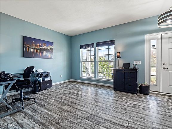 Welcome to this absolutely stunning home built in 2016, located in Sandstone Ridge! This property offers a rare, private backyard with dozens of acres behind you — a serene and picturesque setting that’s hard to find. A charming front porch adds even more curb appeal and a warm welcome. Step inside the front door to find brand-new flooring installed throughout the main level in 2020. The home greets you with a welcoming foyer and a perfect for a formal living area with large windows flaunting natural light throughout! The spacious family room features a wall of windows that fills the space with natural light and creates the perfect setting for entertaining or relaxing at home. The kitchen, updated with granite countertops in 2017, opens to a bright morning room overlooking the beautifully landscaped backyard. Kitchen also includes tall cabinets, tile backsplash, pantry and stainless appliances. The first-floor laundry and half bath add convenience to the layout. Second floor boasts new carpet in 2024!! Upstairs, you’ll find a versatile loft area ideal for a sitting room, playroom, or study space. Two generously sized bedrooms share a full hall bath, while the expansive owner’s suite offers a walk-in closet, peaceful views of the private backyard, and a luxurious ensuite bath with a rainfall showerhead, granite countertops, and a linen closet. The finished basement provides a highly sought after additional living space — perfect for a media room, gym, or play area — along with ample storage. Step outside to your backyard oasis, complete with a Trex deck, pergola with lighting, hot tub, paver patio, built-in firepit, shed, Sonos speaker system and a fully fenced yard. This is truly an entertainer’s dream and one of the most impressive backyards in Sandstone Ridge! THIS HOUSE REALLY HAS IT ALL!!