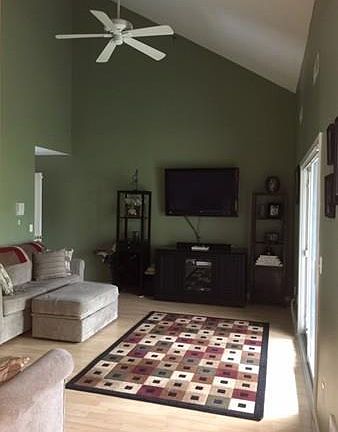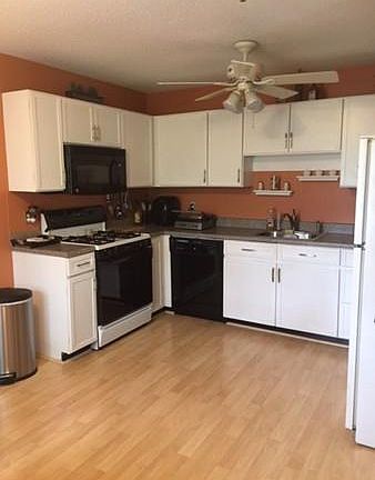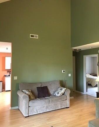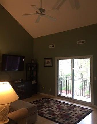 Spacious top floor unit featuring; large living room with cathedral ceilings, private balcony, large eat-in kitchen with open floor plan, two generous bedrooms, updated bath, plenty of closet space, laundry/storage area, and garage under.