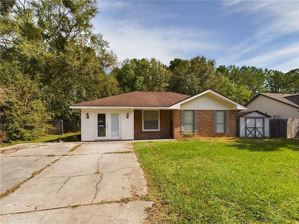 Solid 3 Bedroom, 1 Bathroom Residence in the Charming Timber Ridge Community of Slidell, conveniently located just minutes from Hwy 190. This home features an inviting open floor plan with beautiful wood laminate flooring in the living room and bedrooms, while the kitchen, breakfast nook, and bathroom boast attractive tile flooring. The laundry room is thoughtfully plumbed for the addition of a half-bath if desired. Enjoy the outdoors on the covered concrete back porch with a lattice enclosure in the fenced yard. Additionally, there is a spacious detached shed great for storage or use as a workshop. Call today to make this wonderful property your own!
