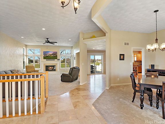 Highest & Best Due 5/7 by 7pm. Welcome to 124 Titleist Trail, a truly exceptional 5-bedroom, 3.5-bathroom executive home nestled within an exclusive enclave of Poplar Grove. This elegant ranch-style residence spans an impressive 3850 square feet, situated on a generous .64 acre lot with stunning views of the picturesque Timber Pointe Golf Course. Upon entering, you'll be greeted by a grand foyer that leads into an open-concept living space, highlighted by a great room boasting soaring volume ceilings and an elegant fireplace. The kitchen is a chef's dream, featuring granite countertops, stainless steel appliances, new lighting and hardware, and a breakfast bar for casual dining. The main level also includes a formal dining area and access to the Trex deck for outdoor entertaining and enjoyment of the serene surroundings. The primary suite is a luxurious retreat, complete with a beautifully updated bathroom featuring new quartz countertops, new lighting fixtures, and hardware, as well as a walk-in closet with a custom organizer system. Two additional bedrooms on the main level offer ample space and comfort, while the full, finished walkout basement adds two more bedrooms, gym, fireplace and bar. This home is not only aesthetically pleasing but also equipped with modern conveniences, including Ring security system, 220-volt EV charging capabilities and smart tech garage door openers. Additional updates include new light fixtures throughout, new carpeting, a new water heater, custom closet organizer systems in multiple bedrooms. With fresh paint and new, premium window blinds throughout, this home is truly move-in ready. Experience the epitome of upscale living in this meticulously maintained residence, offering a seamless blend of elegance, warmth, and executive comfort. Don't miss the opportunity to make this stunning property your own. Schedule your private tour today and elevate your lifestyle at 124 Titleist Trail.