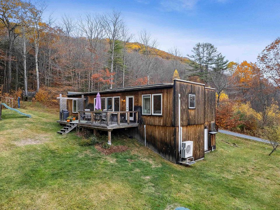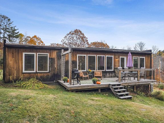 Situated on 7 private acres in the coveted village of South Strafford, VT, this 3-bedroom, 2-bathroom home offers wonderfully functional spaces throughout, while its Vermont Efficiency rating provides low-cost living year-round. Solar panels and a back-up Tesla battery pack add to the convenience of this comfortable contemporary home. The primary en-suite features a spacious bedroom, oversized walk-through closet, and full bath. The well-appointed kitchen connects to a large, light-filled living room overlooking the deck and backyard. Down the hall from the living room are two more bedrooms and another full bath. The laundry room is just off the kitchen and offers ample space for a pantry and interior storage, plus a shed and walkout basement area provide even more space for storage. Beautiful new hardwood floors were added within the past year. This is a wonderful opportunity to live in a serene setting, while still within an easy drive to Dartmouth College, Dartmouth Health Medical Center and all of the amazing amenities the Upper Valley has to offer. The well-respected Newton Elementary School is just down the road, and Strafford offers high school choice to top ranked institutions like Hanover High, Thetford Academy, Sharon Academy, and others. Open House Tuesday, October 28, 4- 6 PM.