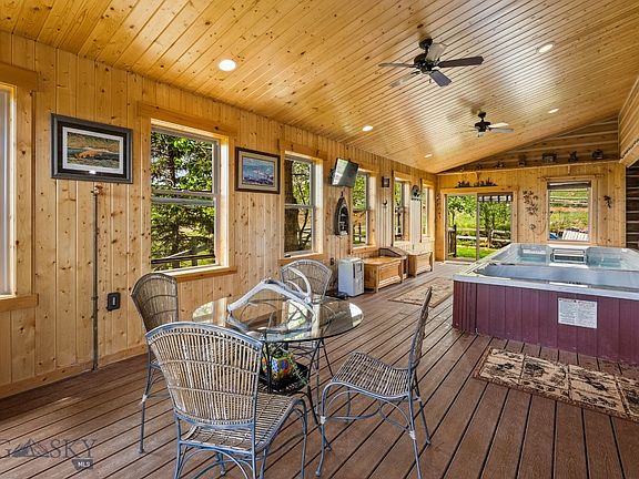 "SELLER" Financing Available!! Seller will look at all offers. end-of-the-road privacy of 5.5 +/- acres in this beautiful custom log home along Trail Creek. The property is fenced for horses and has a 30' x 40' Metal workshop/barn, Alternative Energy & grid network, custom rock work, and handicap accessible amenities. The exterior of the home features local quarry rocks handcrafted and inlaid with elk antlers by local mason Ryan Bork, Idaho logs and Washington Cedar Planks. Rocks were hand-picked from the hillside west of the house by the current (and only) owner. You can find a few other signature log structures in and around Bozeman and West Yellowstone built by this Log Home Craftsman, but this is the only log home by this builder in the Madison Valley. Each piece of pine trim in the house and each individual log step in the stairway was hand-cut for this home. The view from the front deck is stunning, from Ennis Lake to Indian Creek you can watch the sunrise and sunset across the entire Madison Valley. Year-round live water off Trail Creek along the North boundary of the property. The front deck view of the Madison Range and Big Sky's famous Lone Peak is perfect for summer cookouts and entertaining. Inside, step into the Sun Room which has a therapy pool with treadmill and spa on an elevated Trex decking for handicap wheelchair access into the pool/spa. Alternative energy electrical lines run under decking into Sun Room and hook up to battery pack and inverter. The dining room, kitchen & living room is one open space for entertaining and taking in the incredible view. Enjoy the ambiance and warmth of the wood pellet stove in the winter and on cool spring and fall nights. The kitchen has all new bronze-stainless appliances (Winter 2019), and has a counter-top bar with seating for 4. The Master suite is on the entire upper floor! In this amazing room, you won't sleep in during the summertime with the brilliant Sun rising behind Fan Mountain and Lone Peak. Separate shower room and toilet room. The daylight basement is currently a child's playroom, which would transition beautifully into a great den that has a vent/exhaust for another wood pellet stove. This is where you will also find the handicap-accessible bathroom. There are two bedrooms on the lower level one is non-conforming and has no window. Access to Axolotl Lakes and/or Virginia City from house via Horse back, 4-wheeler or side by side.