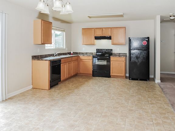 Fenced backyardCozy focal pointSliding glass doorsAmple counter spaceBlack appliancesFunctional single-story layoutOutdoor gatherings