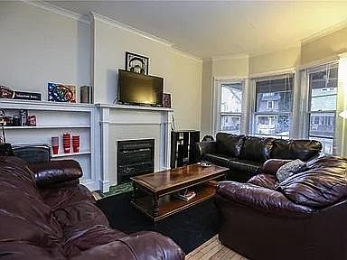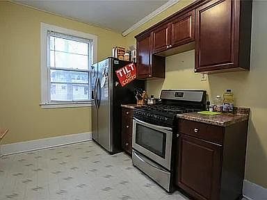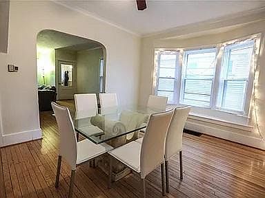 3 bedrooms each with closets. 1 bathroom, full kitchen, separate pantry, dining room, living room, unfinished attic for storage unfinished basement for storage or gym onsite laundry in basement spacious front porch back yard for barbeque fun neighborhood Owner pays water and yard work. Tenant pays gas and electric and internet. Non-smoking.