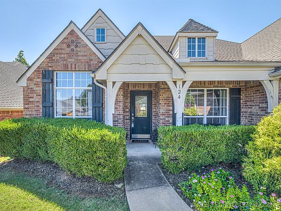This updated home in the sought-after Wakefield Glen subdivision (Bixby Schools) offers 3 bedrooms, 2 full baths, Study, Formal Dining and 2,349 square feet of flexible living space—all set on a peaceful greenbelt lot. Open floor plan, with large windows overlooking greenbelt and seamless flow between the vaulted great room, kitchen and kitchen nook. The kitchen features a granite island, walk-in pantry, abundant counter space, subway tile backsplash, and updated cabinetry. The private master suite includes dual vanities, a soaking tub, walk-in shower, and large walk-in closet. Two additional bedrooms share a hall bath with dual sinks. Dedicated flex room off entry can be used as an office, playroom, or second living area. Laundry and mudroom areas add everyday convenience.
