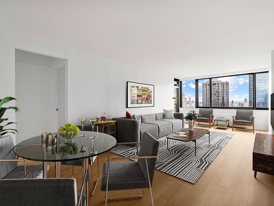 Completely renovated in 2021, this 52-story tower offers studios, one-, two- and three-bedroom residences with room for everything. Spacious living rooms, many with a balcony or terrace, enhance the endless views spanning across Central Park, Hudson River, and New Jersey. The state-of-the-art fitness center, pool and sauna are all part of the South Park Tower resident experience. Its prominent location is close to Deutsche Bank Center, Columbus Circle, Lincoln Center, Fordham University, and numerous dining and entertainment options. Residents also have access to several other amenities, including a 52nd floor rooftop lounge with 360-degree views of the city, bicycle storage and laundry access. A garage parking space is also available for an additional charge. For more information about the building, please visit our South Park Tower website.