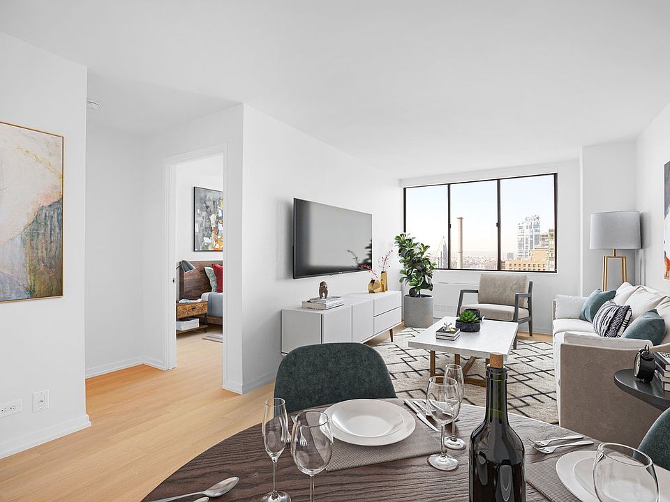 Completely renovated in 2021, this 52-story tower offers studios, one-, two- and three-bedroom residences with room for everything. Spacious living rooms, many with a balcony or terrace, enhance the endless views spanning across Central Park, Hudson River, and New Jersey. The state-of-the-art fitness center, pool and sauna are all part of the South Park Tower resident experience. Its prominent location is close to Deutsche Bank Center, Columbus Circle, Lincoln Center, Fordham University, and numerous dining and entertainment options. Residents also have access to several other amenities, including a 52nd floor rooftop lounge with 360-degree views of the city, bicycle storage and laundry access. A garage parking space is also available for an additional charge. For more information about the building, please visit our South Park Tower website.