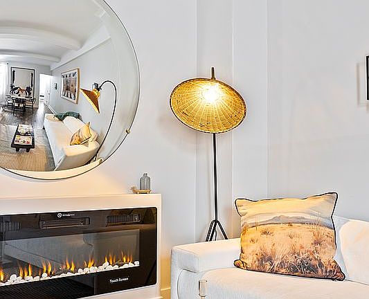 Fully gut-renovated in 2024, this home blends timeless 1920s details with contemporary upgrades, offering the best of both worlds. The residence features high, beamed ceilings, wide-plank solid hickory hardwood floors, enviable customized closets and a dedicated storage space, all-new lighting and AC units, and an in-unit washer & dryer. The inviting living room is anchored by an elegant electric fireplace, creating a warm and comforting focal point.