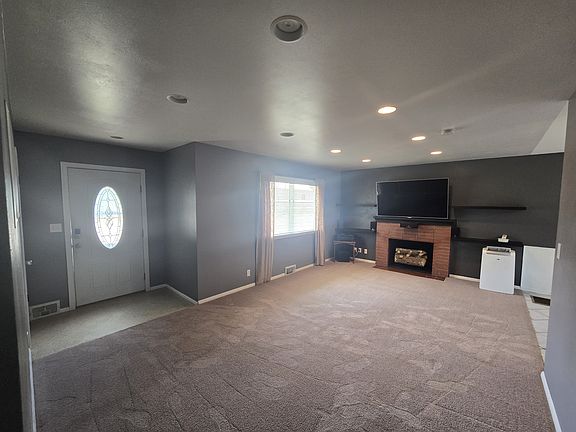 Relax in the inviting living room with its plush carpet, decorative fireplace, surround sound, mounted TV, and cool AC for summer days. The basement is a bonusan open space ready for hobbies, movie nights, or workoutsplus a finished room with its own TV and chalkboard wall that adds a playful touch.